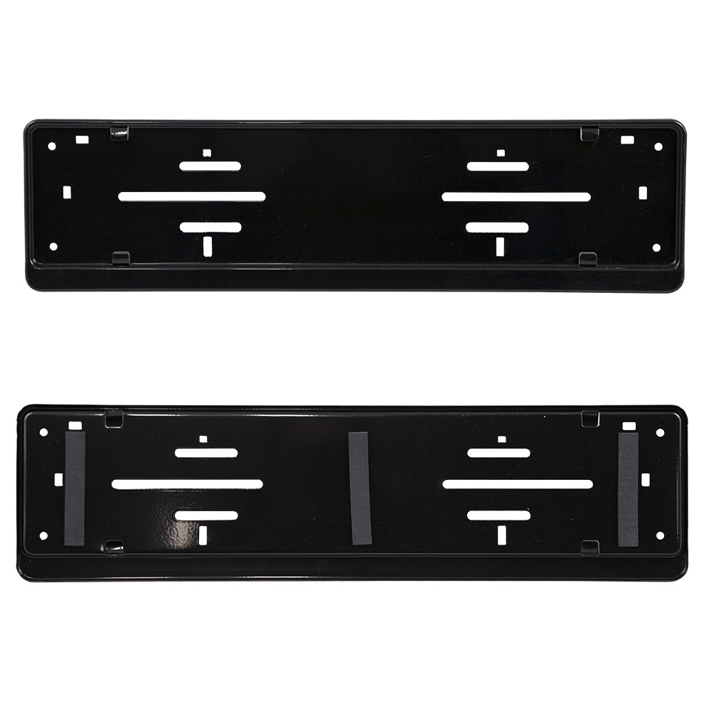 Wir bieten Ihnen hier 2x Premium Kennzeichenhalter aus Stahl Schwarz pulverbeschichtet. Dadurch sind diese Nummernschildhalter langlebig für eine lang anhaltende Freude. Diese Kennzeichenhalter sind universal passend und für Deutschland und EU Kennzeichen mit den Maßen 520mm x 110mm geeignet.