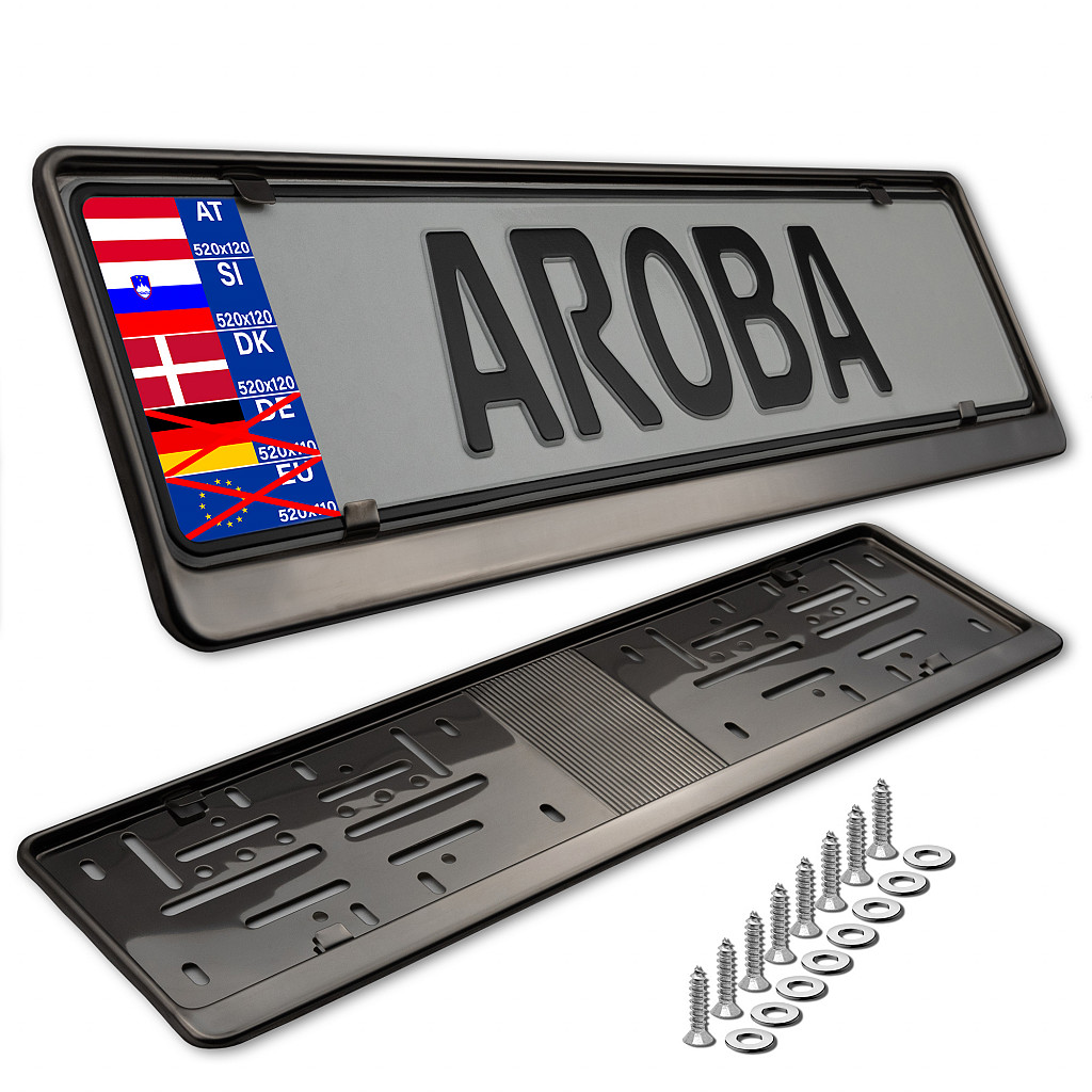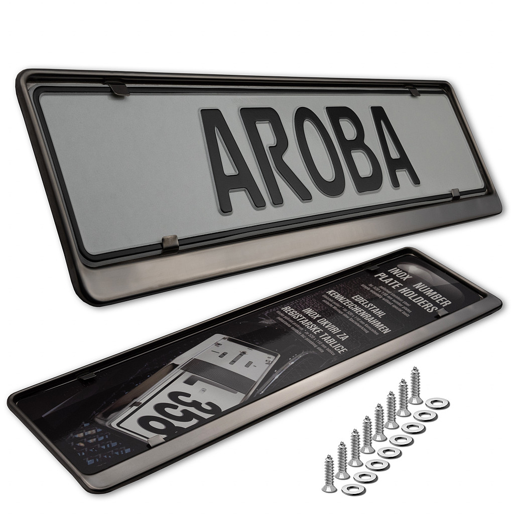 2x Auto Kennzeichenhalter EDELSTAHL DARK MIRROR für Österreich und Slowenien Kennzeichen der Größe 520mm x 120mm (nicht für Deutschland und EU Kennzeichen!)