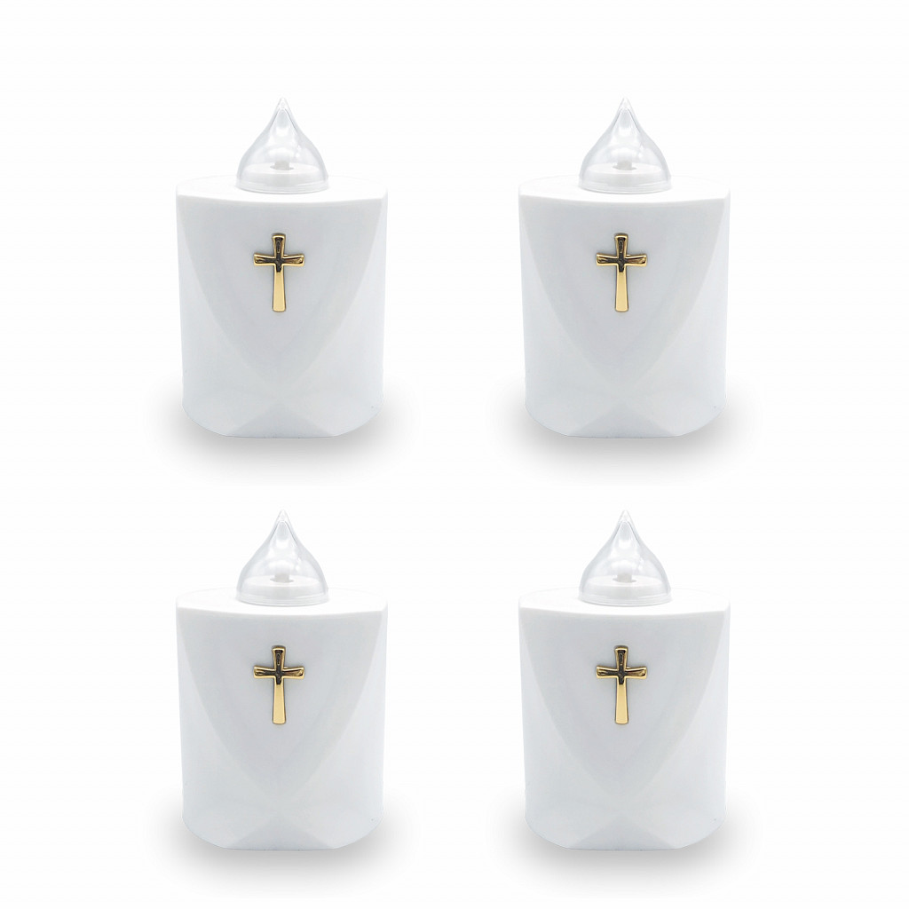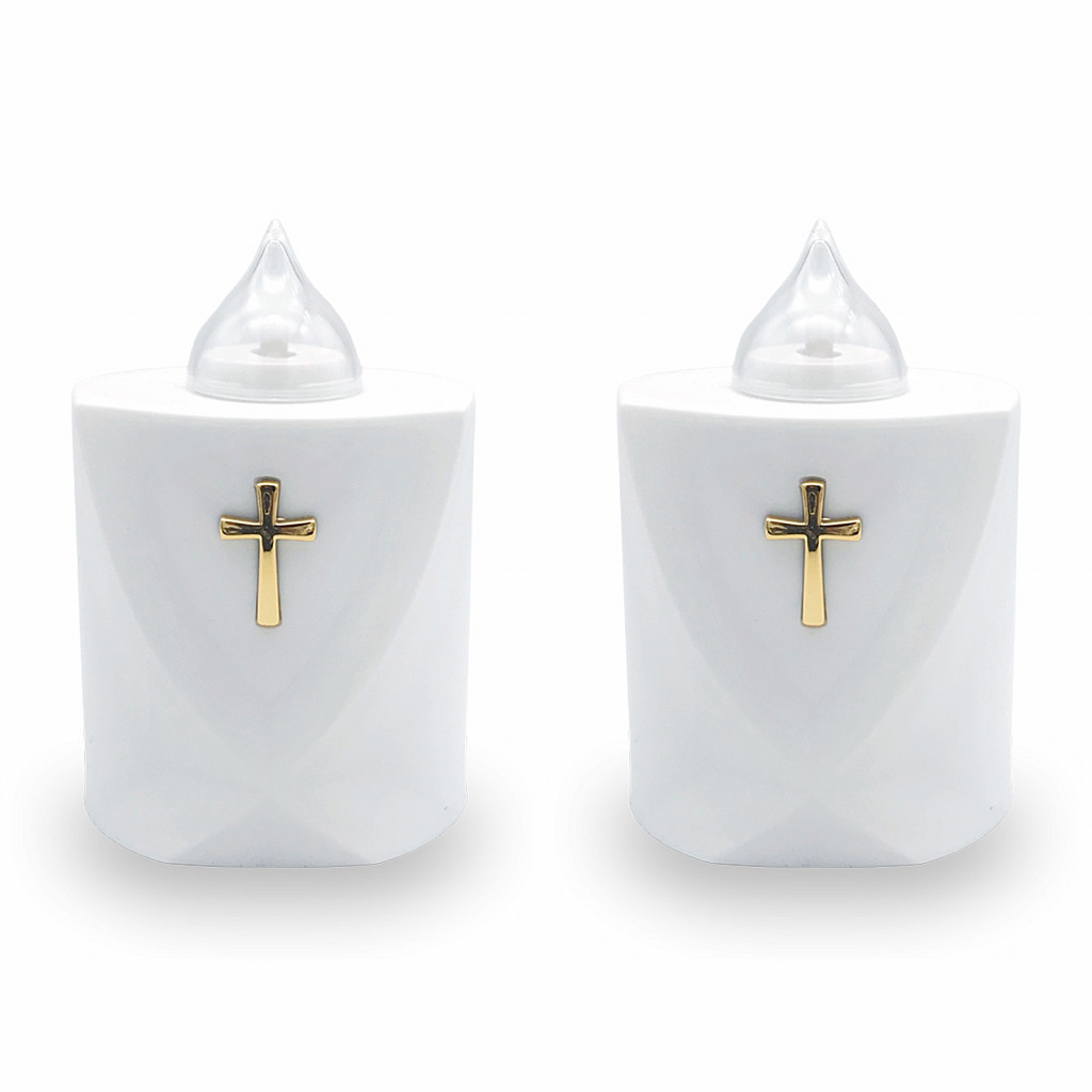 AROBA 2x LED Grabkerze Trauerlicht - Flackereffekt wie echte Kerze - lange Brenndauer bis 120 Tage - wiederverwendbar Friedhofskerze Gedenkkerze Dauerkerze - weiß Heiliges Kreuz