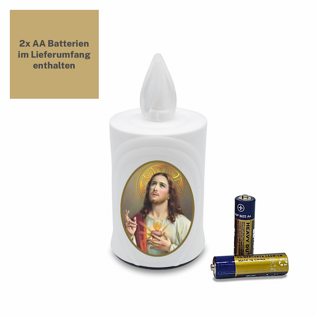 AROBA 2x LED Grabkerze Trauerlicht - Flackereffekt wie echte Kerze - lange Brenndauer bis 120 Tage - wiederverwendbar Friedhofskerze Gedenkkerze - weiß inkl. Auswahl an Heiligen