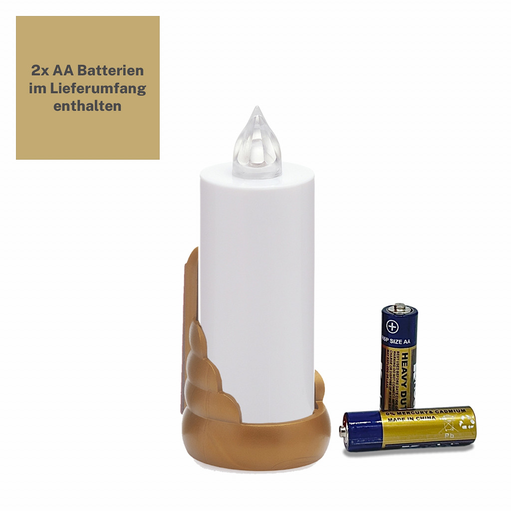 BIS ZU 60 TAGE LEUCHTDAUER:Angetrieben von 2x R6 (AA) Batterien bietet diese Kerze bis zu 60 Tage Licht ohne Unterbrechung. Der praktische EIN/AUS-Schalter ermöglicht, die Batterien bei Bedarf zu schonen, so dass diese noch länger halten. Dies reduziert nicht nur den Abfall im Vergleich zu herkömmlichen Grabkerzen, sondern spart auch langfristig Geld.