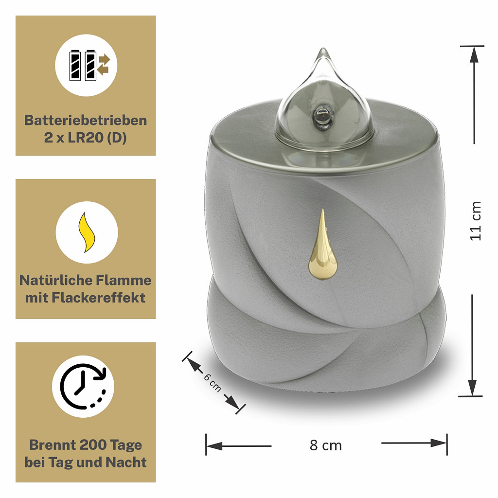 • FLACKERNDE FLAMME: Ein langanhaltendes Licht mit realistisch flackernder gelber Flamme wie bei einer echten Kerze.