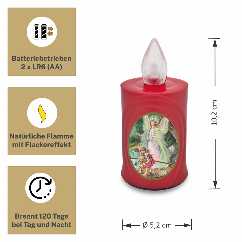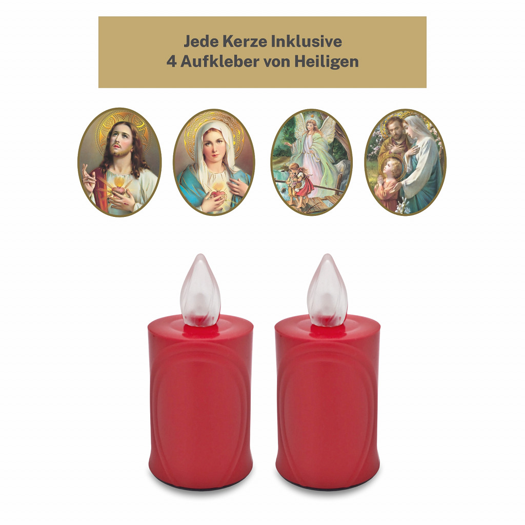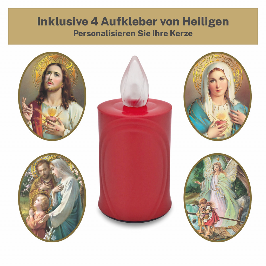 AROBA LED Grabkerze Trauerlicht - Flackereffekt wie echte Kerze - lange Brenndauer bis 120 Tage - wiederverwendbar Friedhofskerze Gedenkkerze - rot inkl. Auswahl an Heiligen