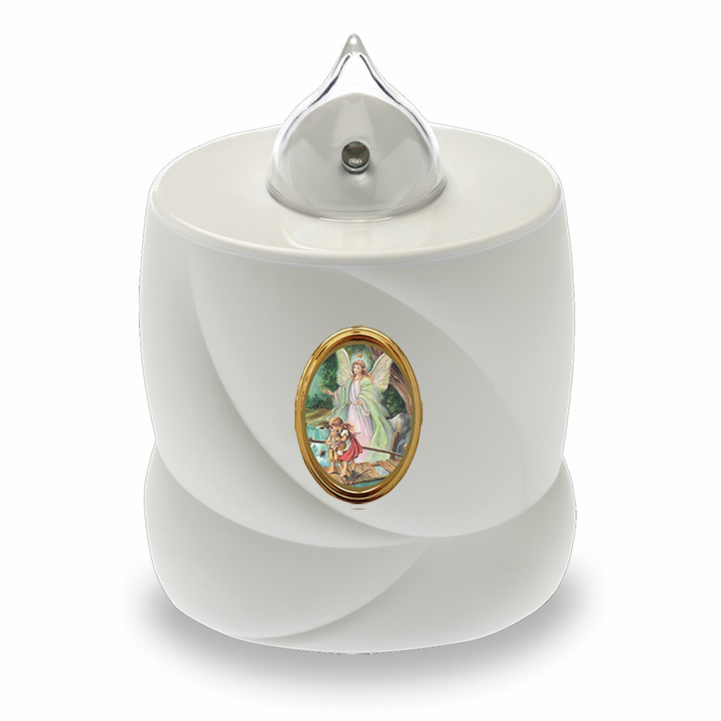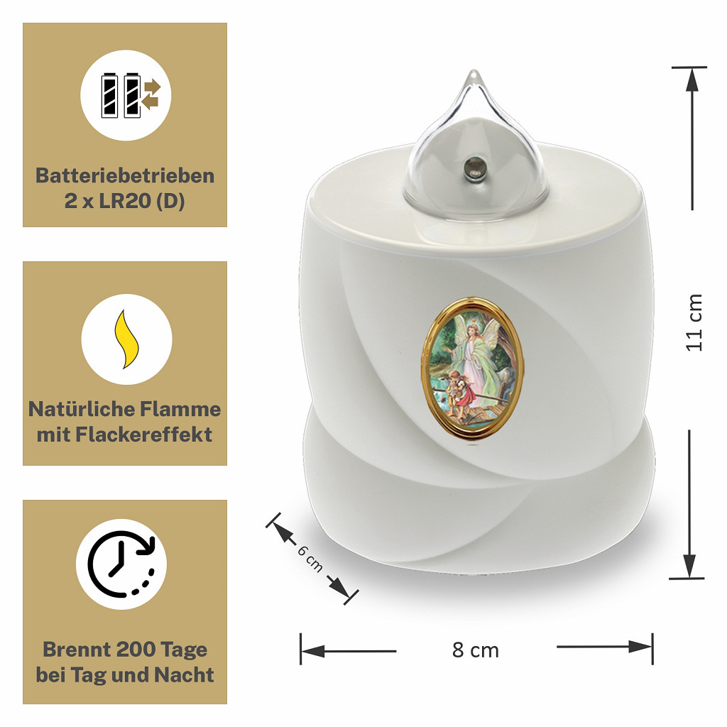 AROBA LED Grabkerze Trauerlicht - Flackereffekt wie echte Kerze - lange Brenndauer bis 200 Tage - wiederverwendbar Friedhofskerze Gedenkkerze Dauerkerze - weiß Heiliger Engel