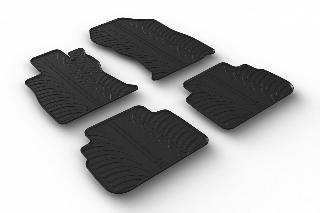 Montageanleitung: Diese Gummi Fußmatten werden einfach auf den Fußboden Ihres Fahrzeugs gelegt und mit den mitgelieferten Befestigungs- Clips an den originalen Befestigungspunkten im Wagen befestigt (falls diese Serienmäßig im Fahrzeug vorgesehen sind).
