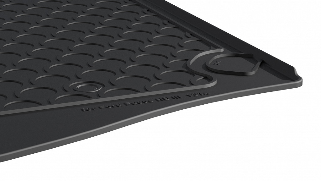 Unsere Kofferraumwannen sind fahrzeugspezifisch gefertigt und sind exakt auf die Konturen und Formen des Kofferraums angepasst. Diese Kofferraumwanne ist passend für Ford Focus (Schrägheck) ab BJ. 03.2011 bis 08.2018 mit schmalem Notrad .