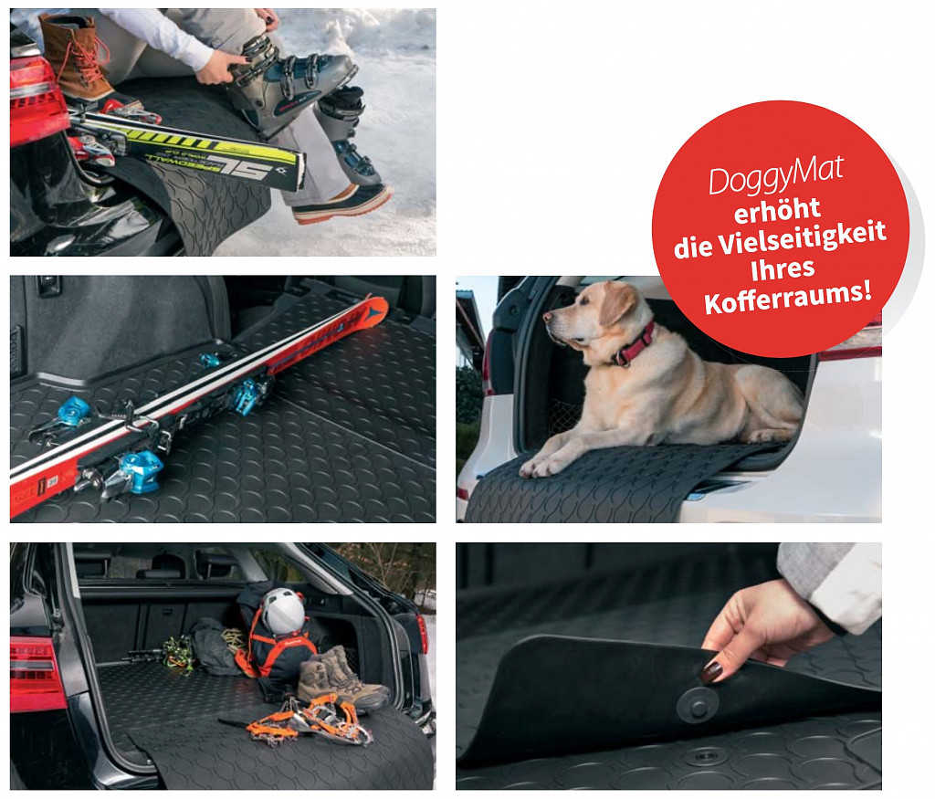 • Mit der optional erhältlichen abnehmbaren Stoßstangenschutzmatte Doggy Mat vielseitig nutzbar- Ladekantenschutz, Schutz für Innenraum