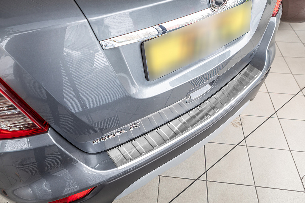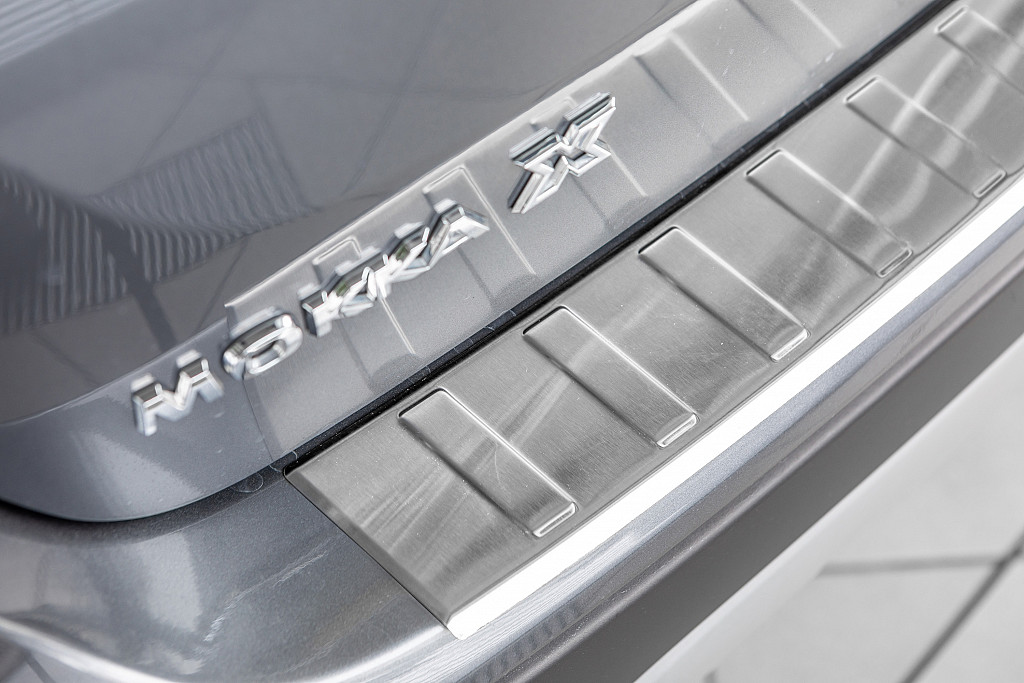 Edelstahl Ladekantenschutz passend für Opel Mokka X BJ. 7.2016-6.2019 Stoßstangenschutz passgenau mit Abkantung V2A Gebürstet
