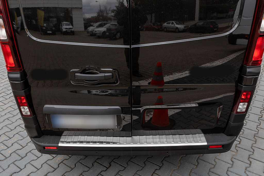 Edelstahl Ladekantenschutz passend für Renault Trafic BJ. 9.2014-6.2019 Stoßstangenschutz passgenau mit Abkantung V2A Anthrazit gebürstet