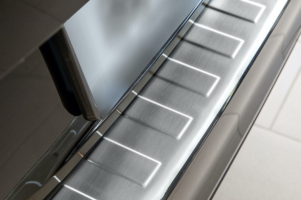 Verleihen Sie Ihrem Fahrzeug einen premium Look, da dieser Ladekantenschutz am Stoßfänger perfekt anliegt (Fahrzeugspezifische Passform).