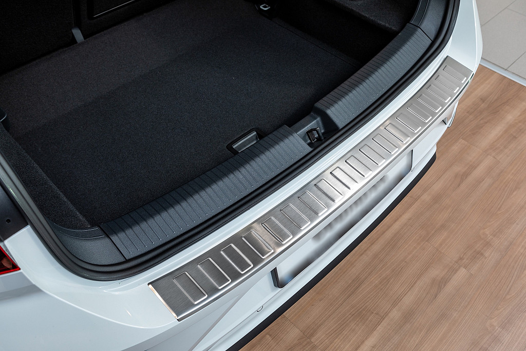 Verleihen Sie Ihrem Fahrzeug einen premium Look, da dieser Ladekantenschutz am Stoßfänger perfekt anliegt (Fahrzeugspezifische Passform).