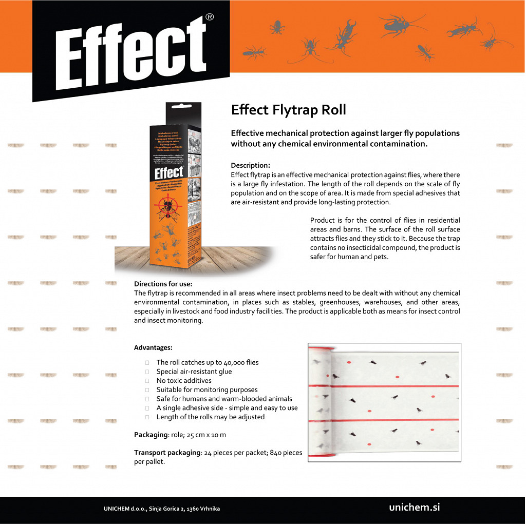 Die UNICHEM Effect Hausfliegenfänger Rolle bietet eine leistungsstarke, mechanische Lösung gegen Fliegenbefall – vollkommen ohne chemische Zusätze. Ideal für große Flächen wie Ställe, Lager, Gewächshäuser oder Wohnräume.