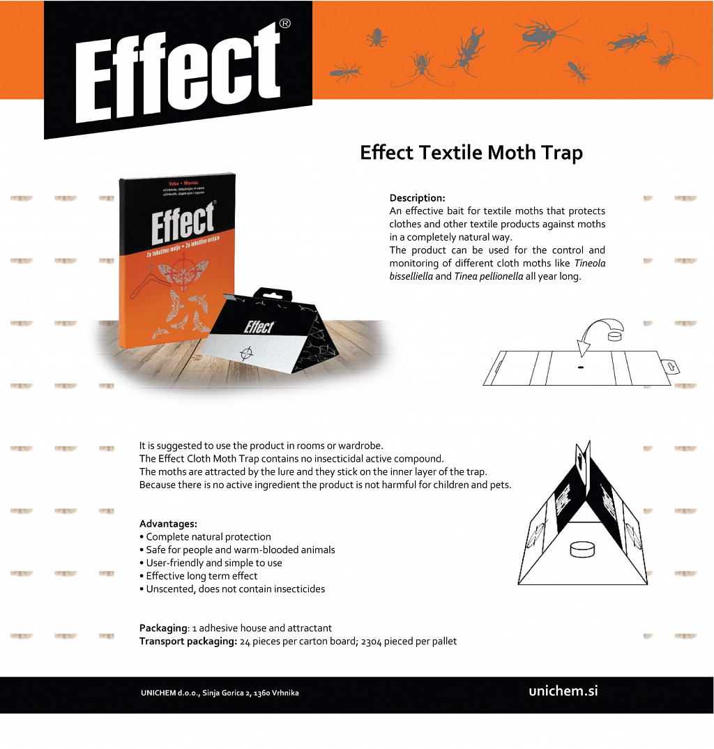 Die UNICHEM Effect Textilmottenfalle bietet zuverlässigen und langanhaltenden Schutz vor allen Arten von Kleidermotten. Entwickelt für den Einsatz in Kleiderschränken, Truhen, Koffern oder Lagerboxen, schützt sie Ihre Kleidung effektiv – ganz ohne den Einsatz von Giftstoffen oder Duftmitteln.
