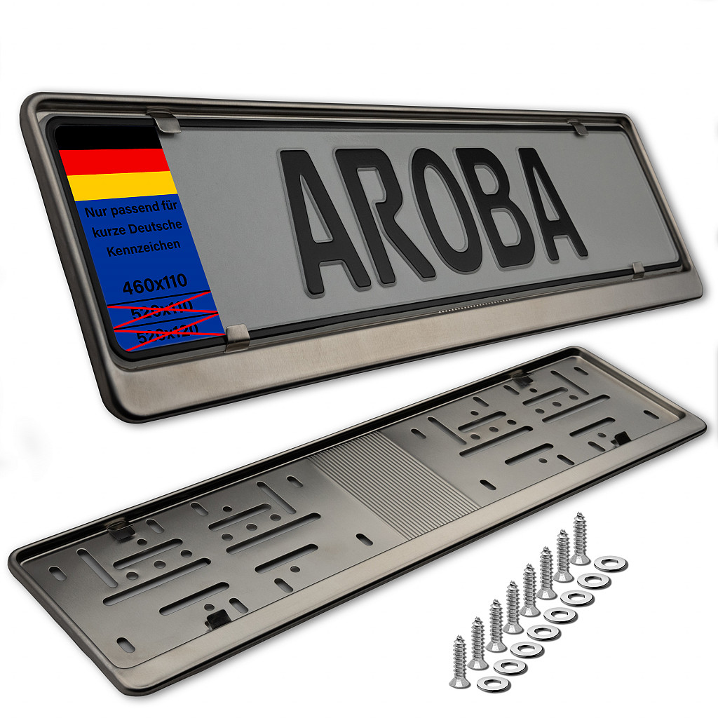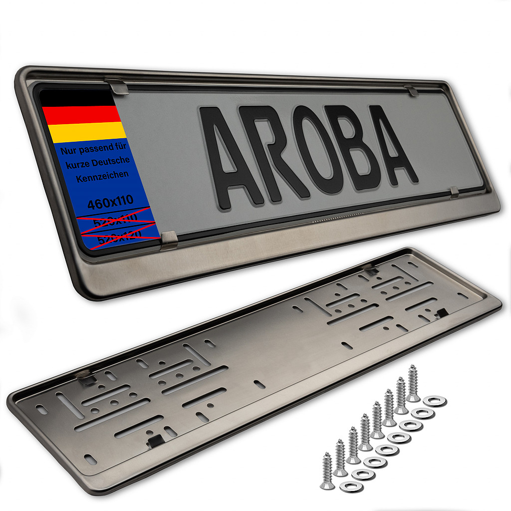 2x Auto License Plate Holder 100% STAINLESS STEEL BRUSHED (Matt) for GERMANY SHORT LICENSE PLATES size 460mm x 110mm (not suitable for standard plate size!)