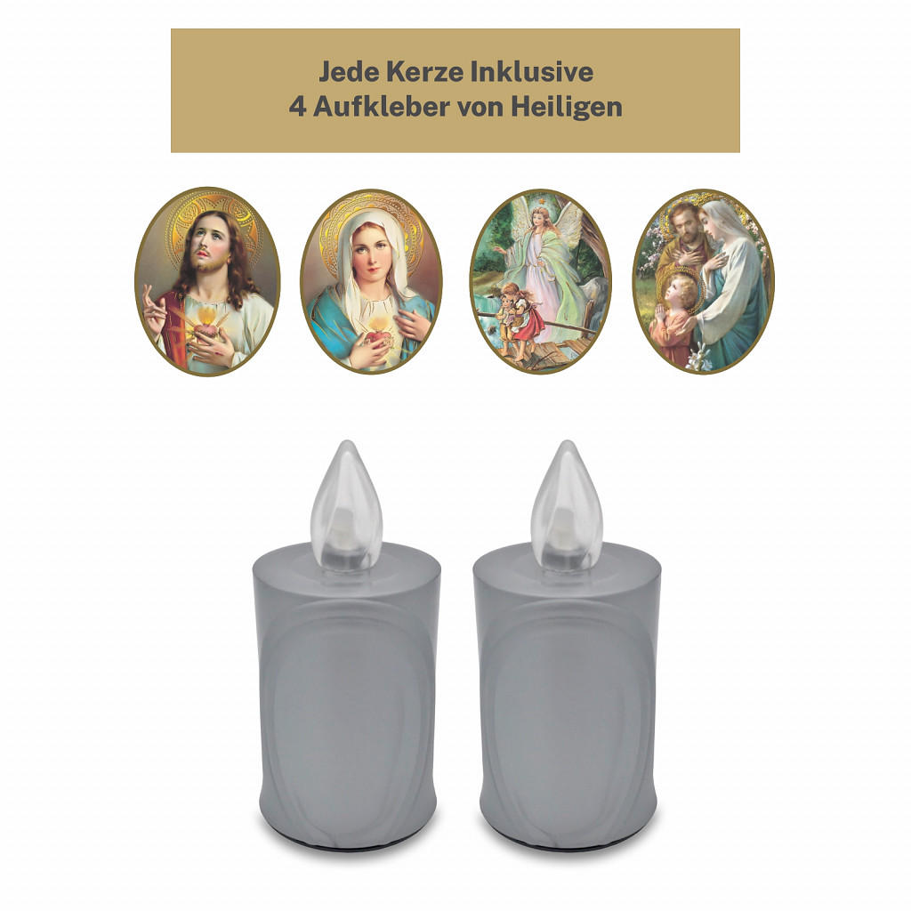 AROBA 2x LED grave candle memorial light – flickering effect like a real candle – long burning time up to 120 days – reusable cemetery candle remembrance candle eternal candle – SILVER – MIXED SAINTS Sticker Set