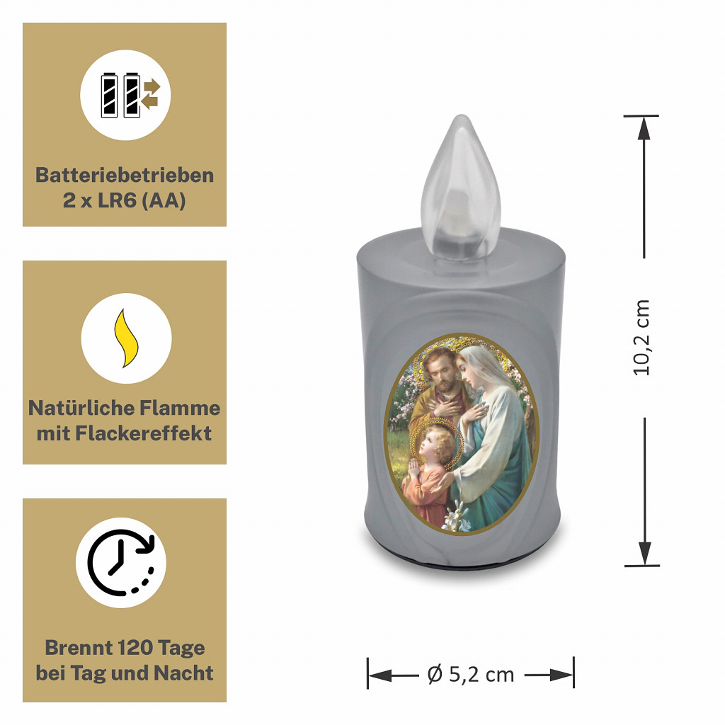 ELEGANT DESIGN:This grave candle impresses with its elegant design. Its high-quality appearance, decorated with images of holy figures such as the Holy Family, Holy Angel, Jesus Christ, or the Holy Mary, makes it a unique and personalized tribute. It adds a special touch of grace and serenity to gravesites, creating a meaningful and peaceful atmosphere.