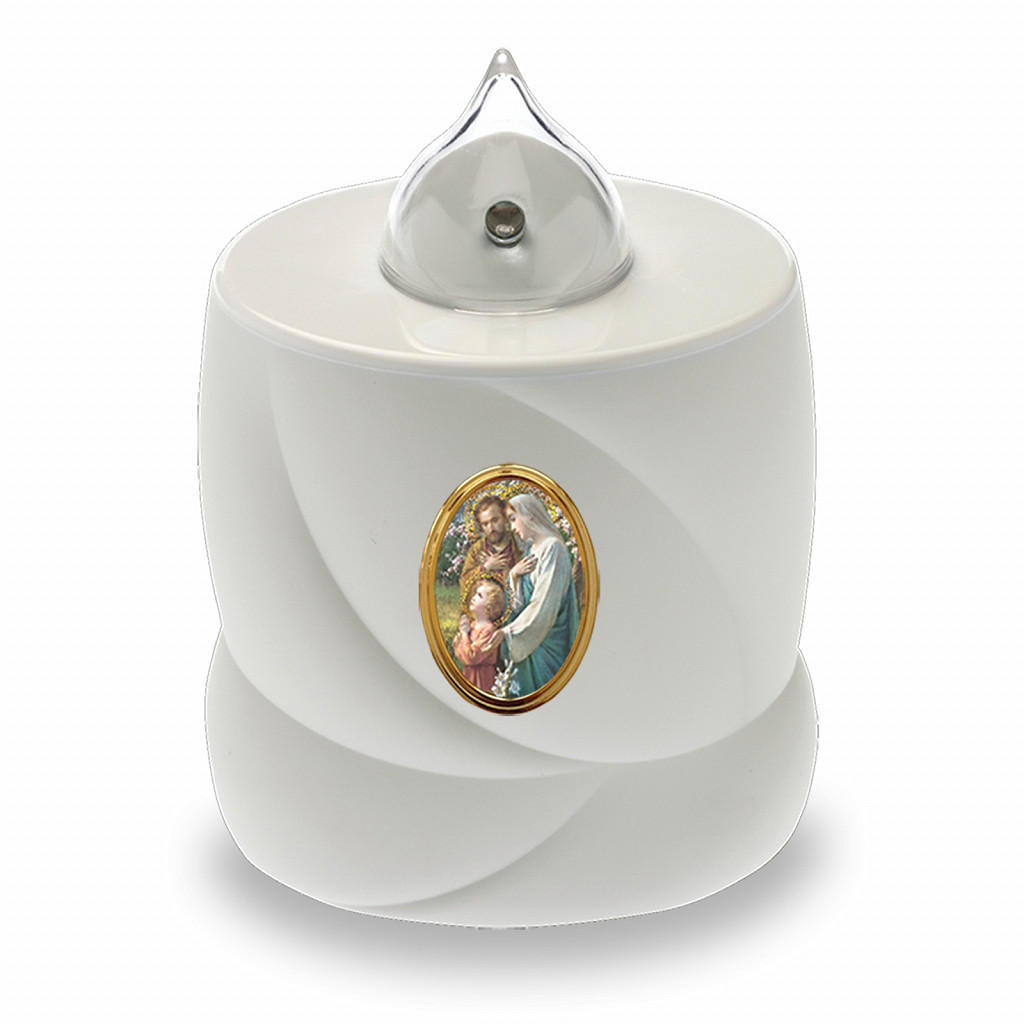 AROBA 2x LED grave candle memorial light – flickering effect like a real candle – long burning time up to 200 days – reusable cemetery candle remembrance candle eternal candle – WHITE – HOLY FAMILY
