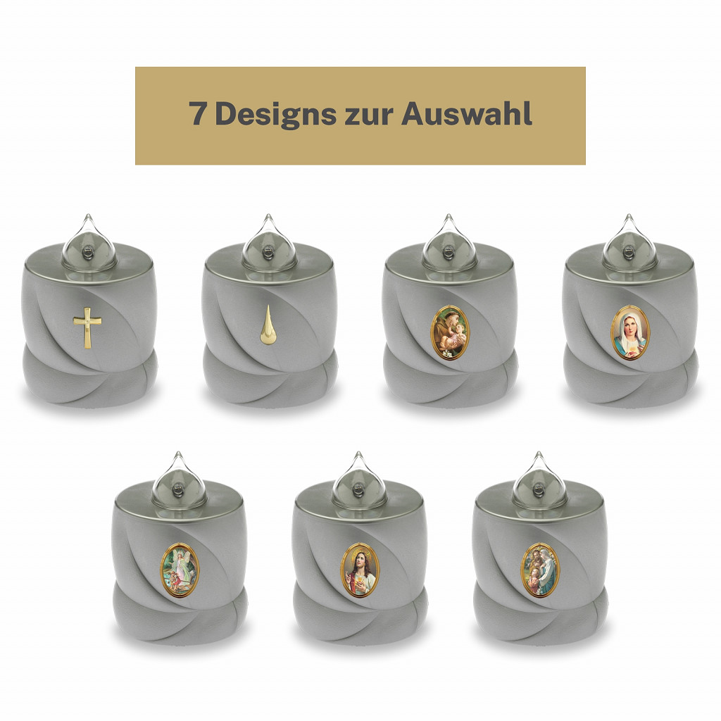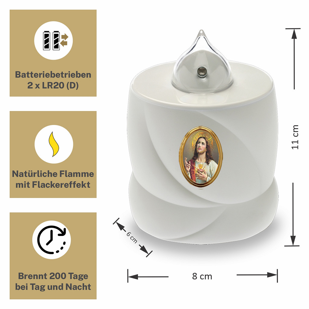 ELEGANT DESIGN:This grave candle impresses with its elegant design. Its high-quality appearance, decorated with images of holy figures such as the Holy Family, Holy Angel, Jesus Christ, the Holy Mary, or Saint Anthony, makes it a unique and personalized tribute. It adds a special touch of grace and serenity to gravesites, creating a meaningful and peaceful atmosphere.