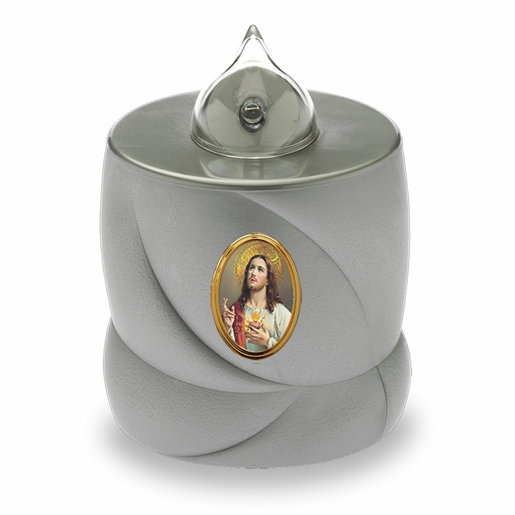 ELEGANT DESIGN:This grave candle impresses with its elegant design. Its high-quality appearance, decorated with images of holy figures such as the Holy Family, Holy Angel, Jesus Christ, the Holy Mary, or Saint Anthony, makes it a unique and personalized tribute. It adds a special touch of grace and serenity to gravesites, creating a meaningful and peaceful atmosphere.