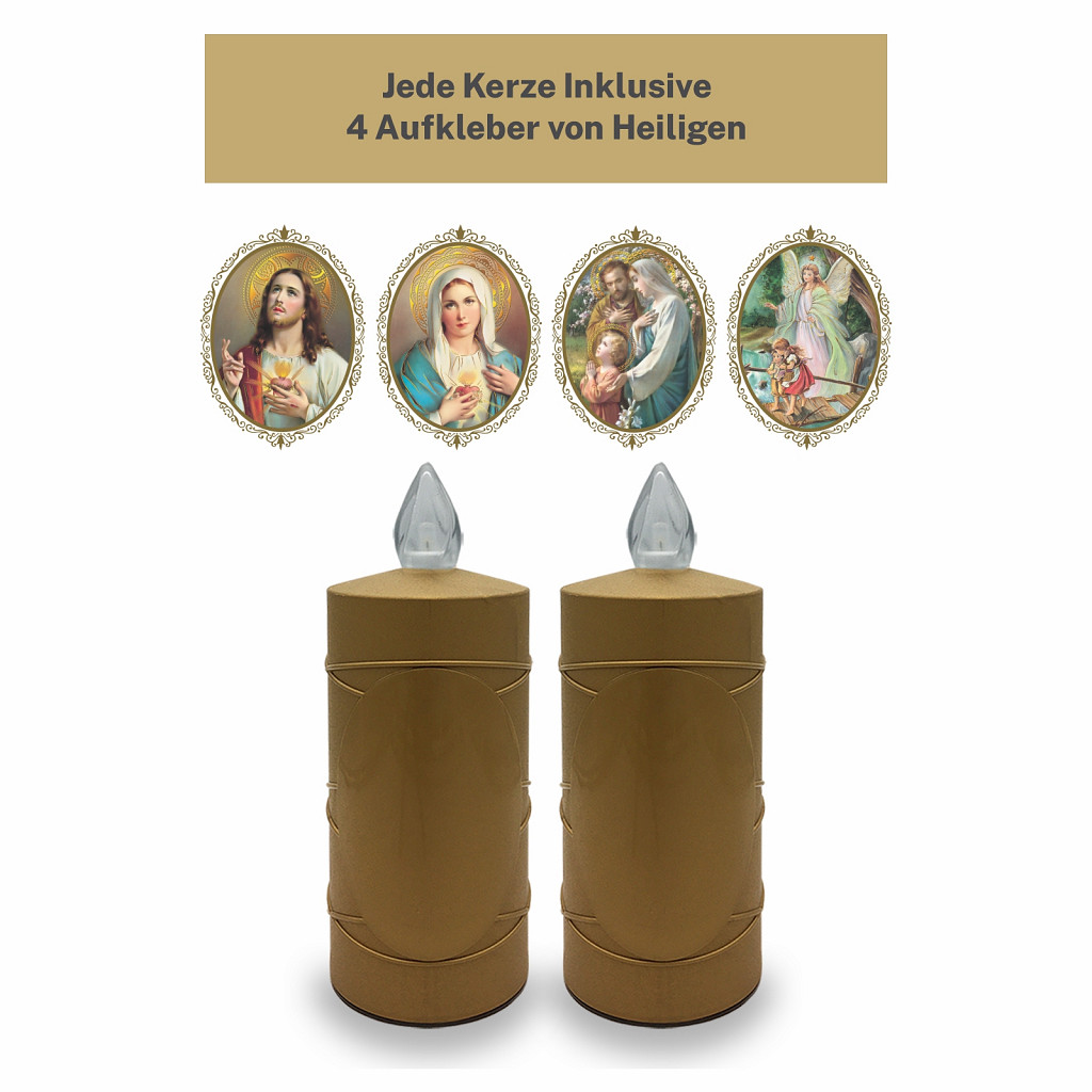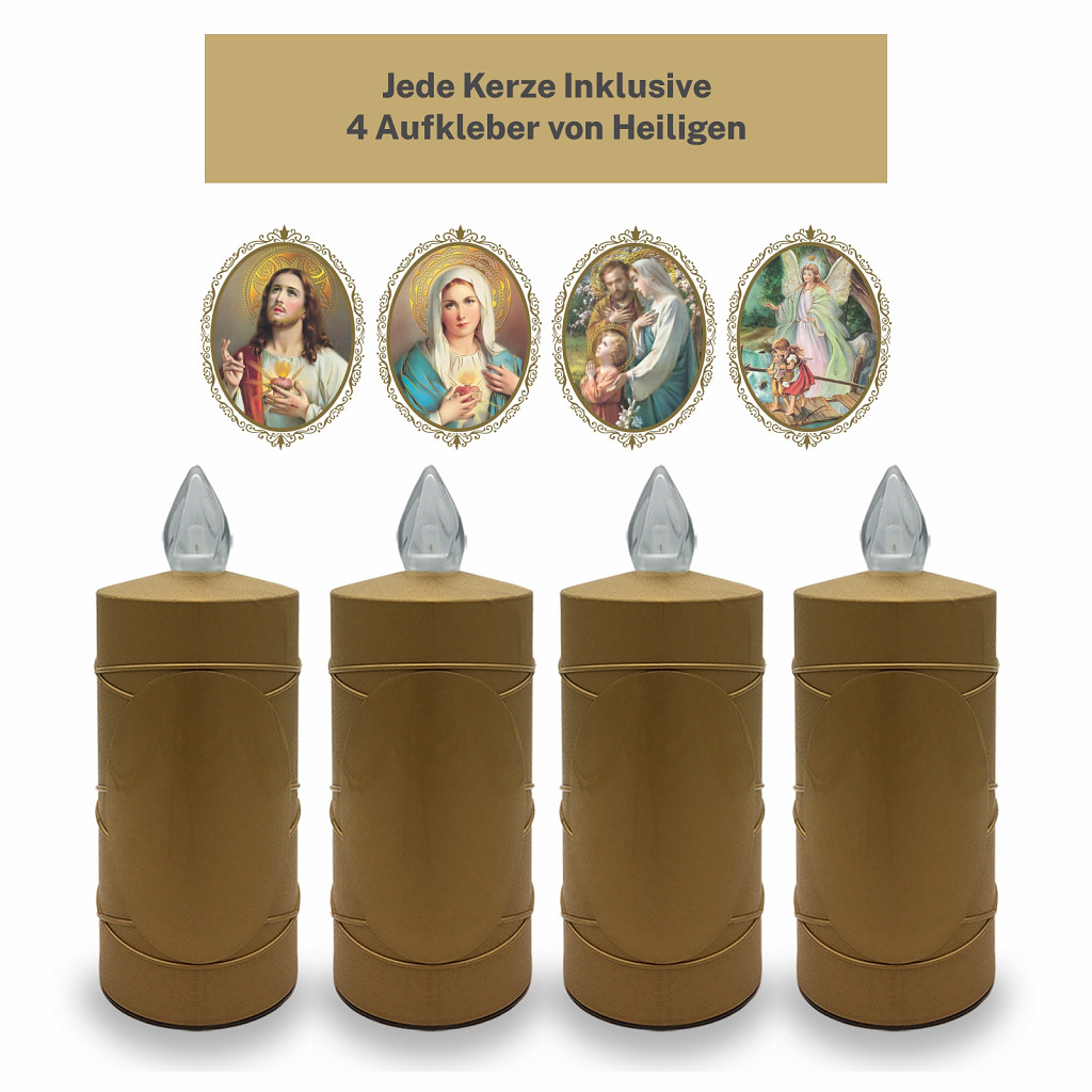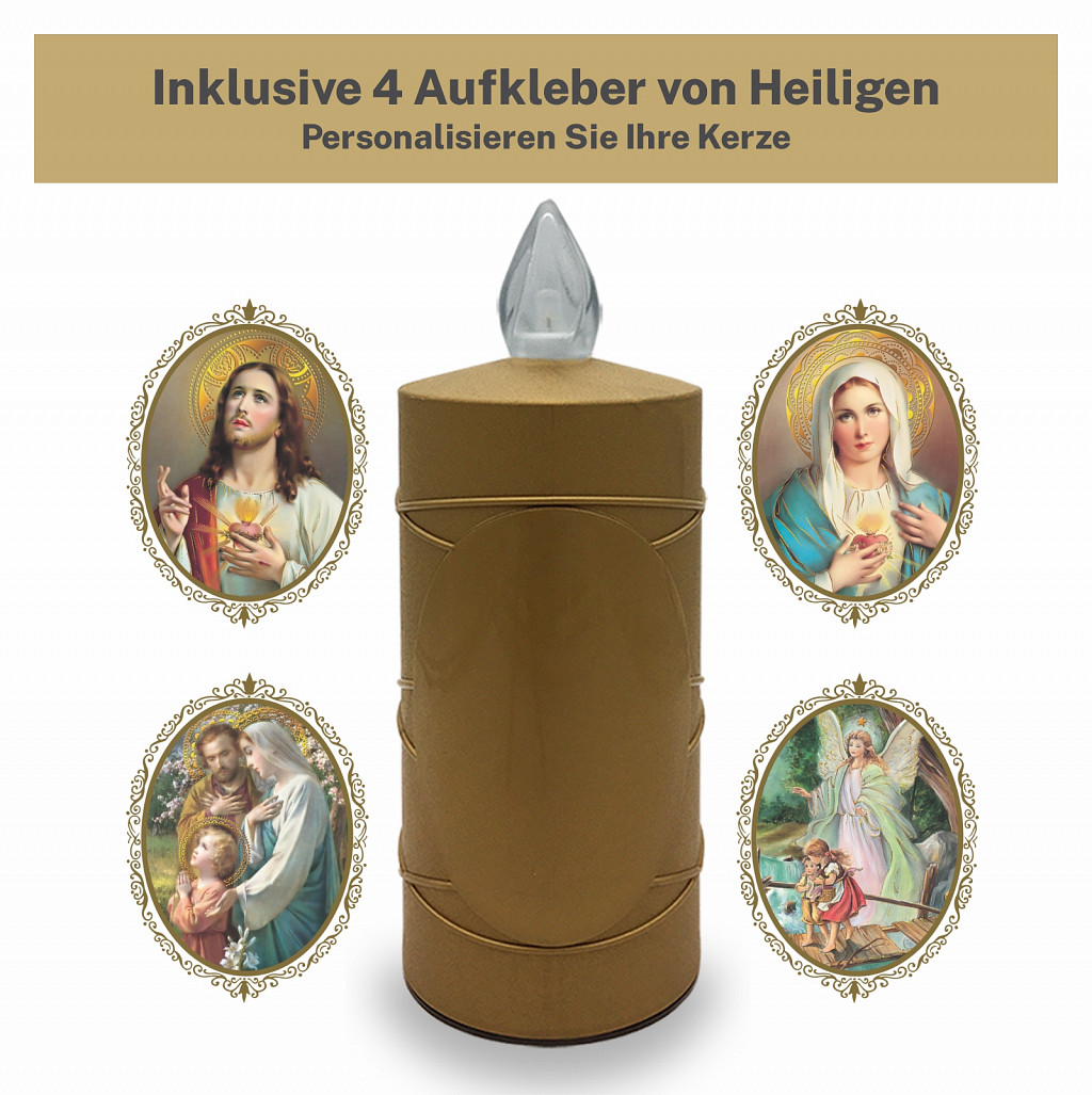 AROBA LED grave candle memorial light – flickering effect like a real candle – long burning time up to 120 days – reusable cemetery candle remembrance candle eternal candle – GOLD – MIXED SAINTS Sticker Set