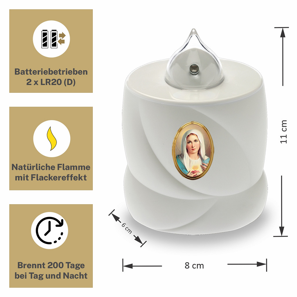UP TO 200 DAYS OF LIGHT DURATION:Powered by 2x LR20 (Mono D) batteries, this candle provides up to 200 days of uninterrupted light. This not only reduces waste compared to traditional grave candles, but also saves money in the long run.