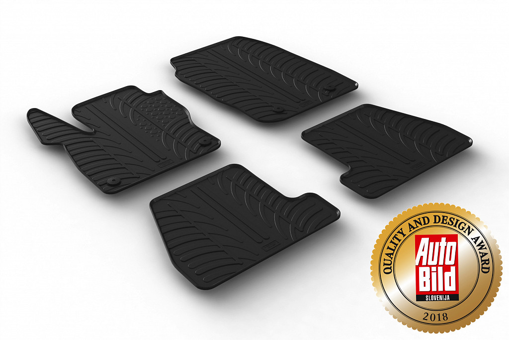 Secure hold Our rubber floor mats, thanks to perfect dimensions, are the ideal protection for the vehicle floor. The non-slip surface effectively prevents shifting. Thanks to the rigid construction, the edge also sits perfectly without folds or unsightly deformations. Our floor mats are equipped with original fastening clips, ensuring that these all-weather floor mats remain securely in the footwell and cannot move freely. This prevents them from sliding under the vehicle’s pedals, thereby increasing safety while driving.