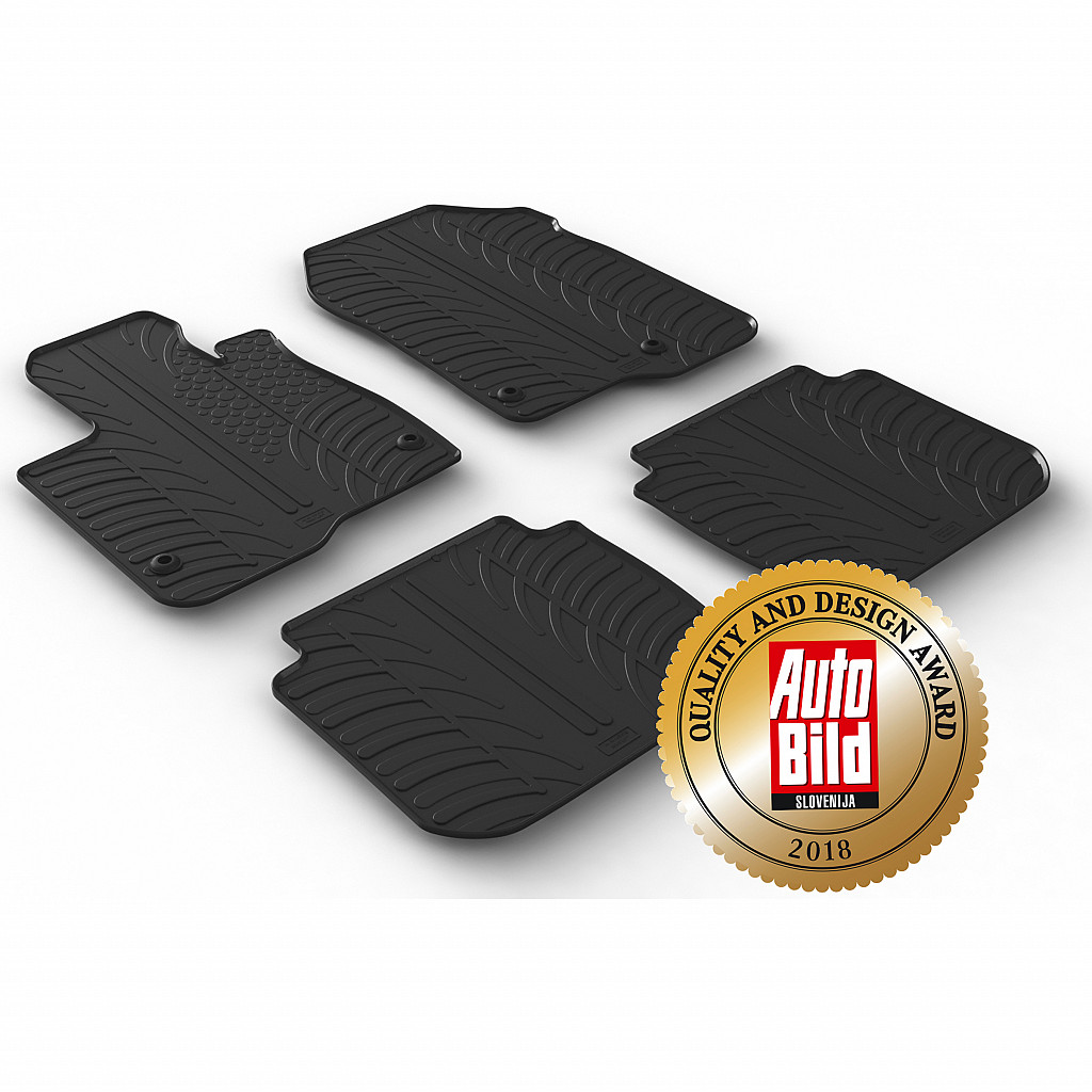 Secure hold Our rubber floor mats, thanks to perfect dimensions, are the ideal protection for the vehicle floor. The non-slip surface effectively prevents shifting. Thanks to the rigid construction, the edge also sits perfectly without folds or unsightly deformations. Our floor mats are equipped with original fastening clips, ensuring that these all-weather floor mats remain securely in the footwell and cannot move freely. This prevents them from sliding under the vehicle’s pedals, thereby increasing safety while driving.