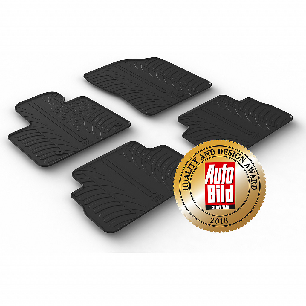 Secure hold Our rubber floor mats, thanks to perfect dimensions, are the ideal protection for the vehicle floor. The non-slip surface effectively prevents shifting. Thanks to the rigid construction, the edge also sits perfectly without folds or unsightly deformations. Our floor mats are equipped with original fastening clips, ensuring that these all-weather floor mats remain securely in the footwell and cannot move freely. This prevents them from sliding under the vehicle’s pedals, thereby increasing safety while driving.