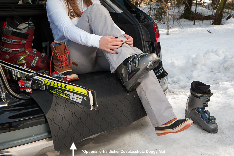 The only multifunctional cargo trunk liner Our trunk liner is the only one on the market offering multifunctionality with the additional “Doggy Mat.” Thanks to the well-thought-out click-in fastening system, the Doggy Mat can be easily mounted or removed on the front or rear side as needed, providing effective protection for the loading edge or vehicle interior in a variety of applications. The Doggy Mat can be ordered as an accessory via our shop and is ideal for anyone who wants to keep the rear bumper in perfect condition despite frequent use of the trunk. The Doggy Mat is particularly recommended for dog owners, athletes, tradespeople, and anyone who uses their trunk regularly.