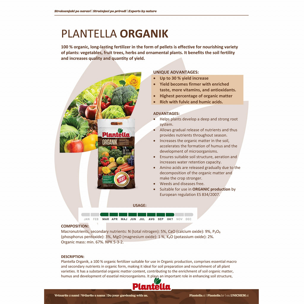 Plantella Organik is a proven effective organic fertilizer in practical pellet form with long-lasting effects. Ideal for gardens, orchards, and herb gardens – to promote humus formation, improve soil fertility, and ensure higher yields.
