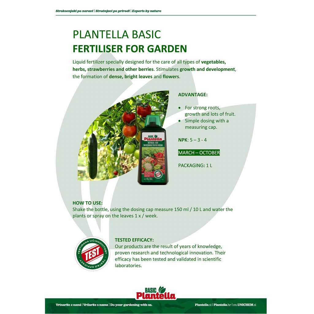 PLANTELLA Basic Garden Fertilizer 1L – Liquid Universal Fertilizer for Vegetables, Herbs, Berries & Fruit – For Strong Roots, Healthy Leaves & Abundant Harvest – Easy to Use, 100% Effectiveness