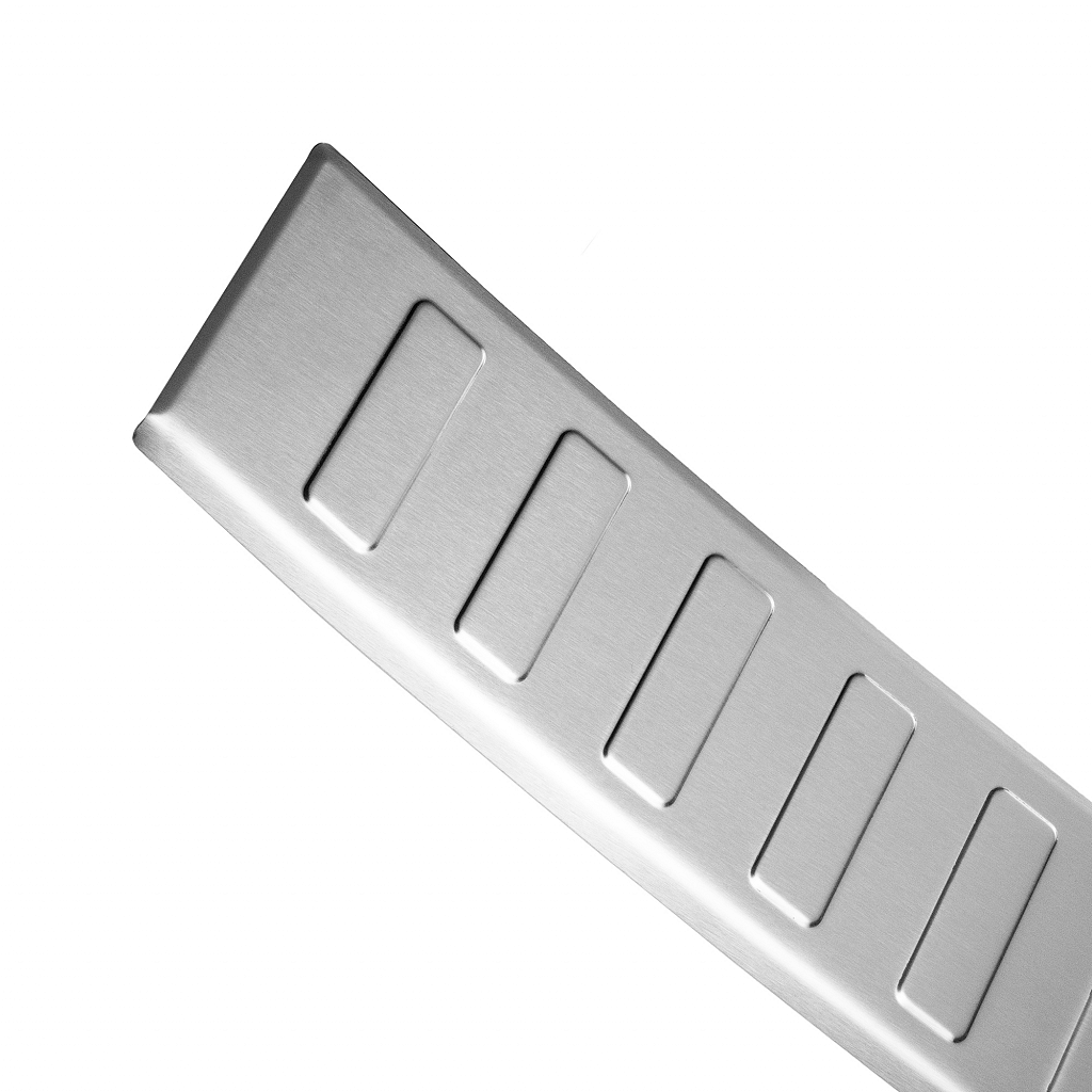 The Aroba stainless steel rear bumper protection protects the entire loading area from scratches and damage. This loading edge protection is precisely shaped to fit perfectly over the shape of the bumper.