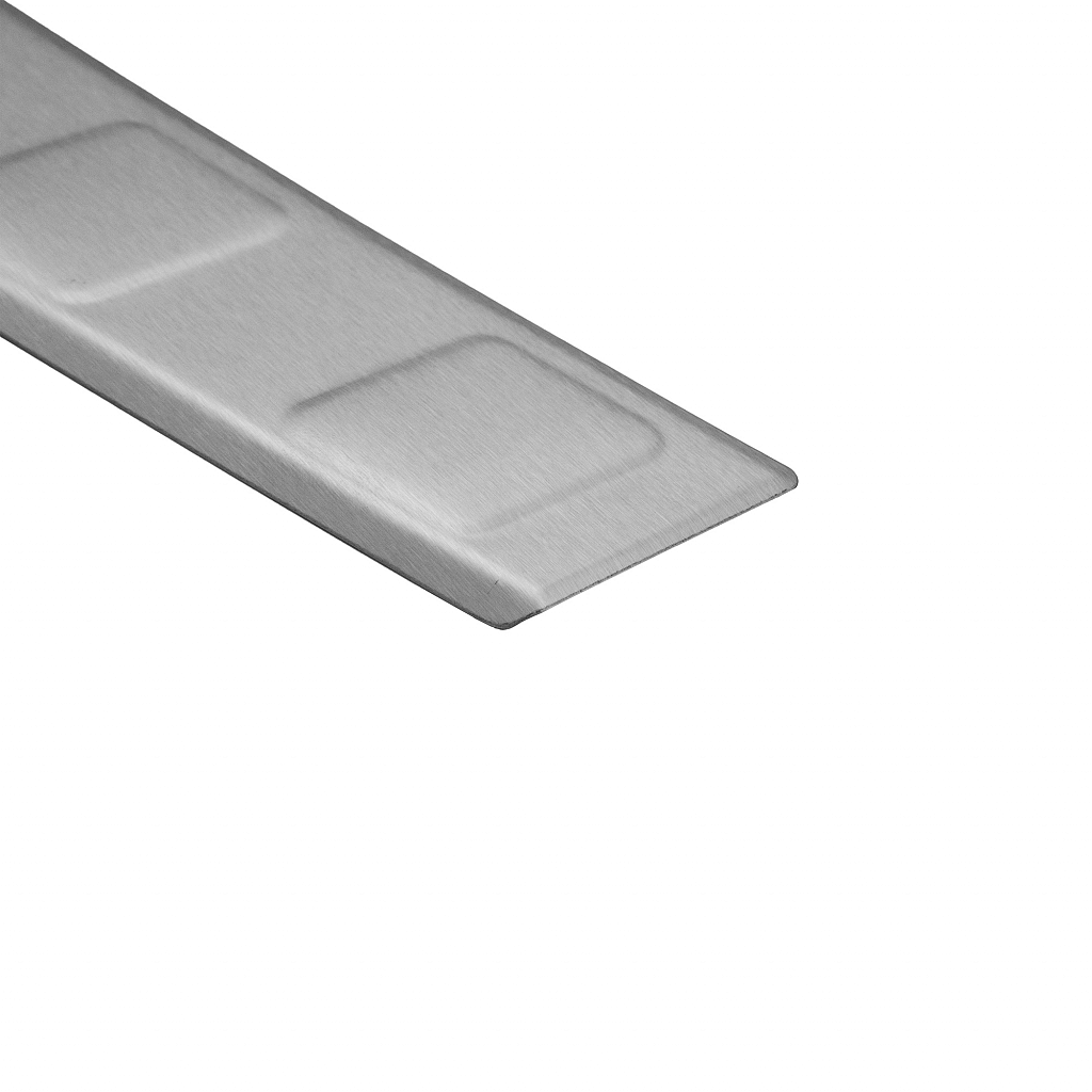 The Aroba stainless steel rear bumper protection protects the entire loading area from scratches and damage. This loading edge protection is precisely shaped to fit perfectly over the shape of the bumper.