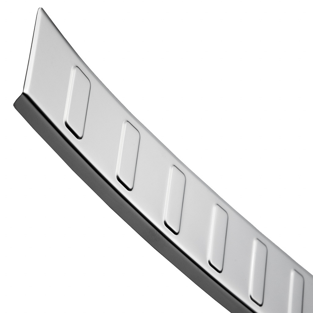 The Aroba stainless steel rear bumper protection protects the entire loading area from scratches and damage. This loading edge protection is precisely shaped to fit perfectly over the shape of the bumper.