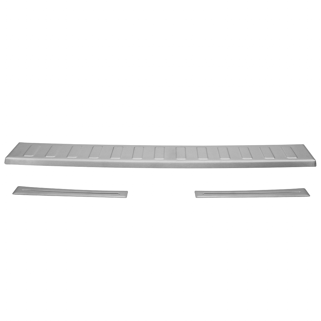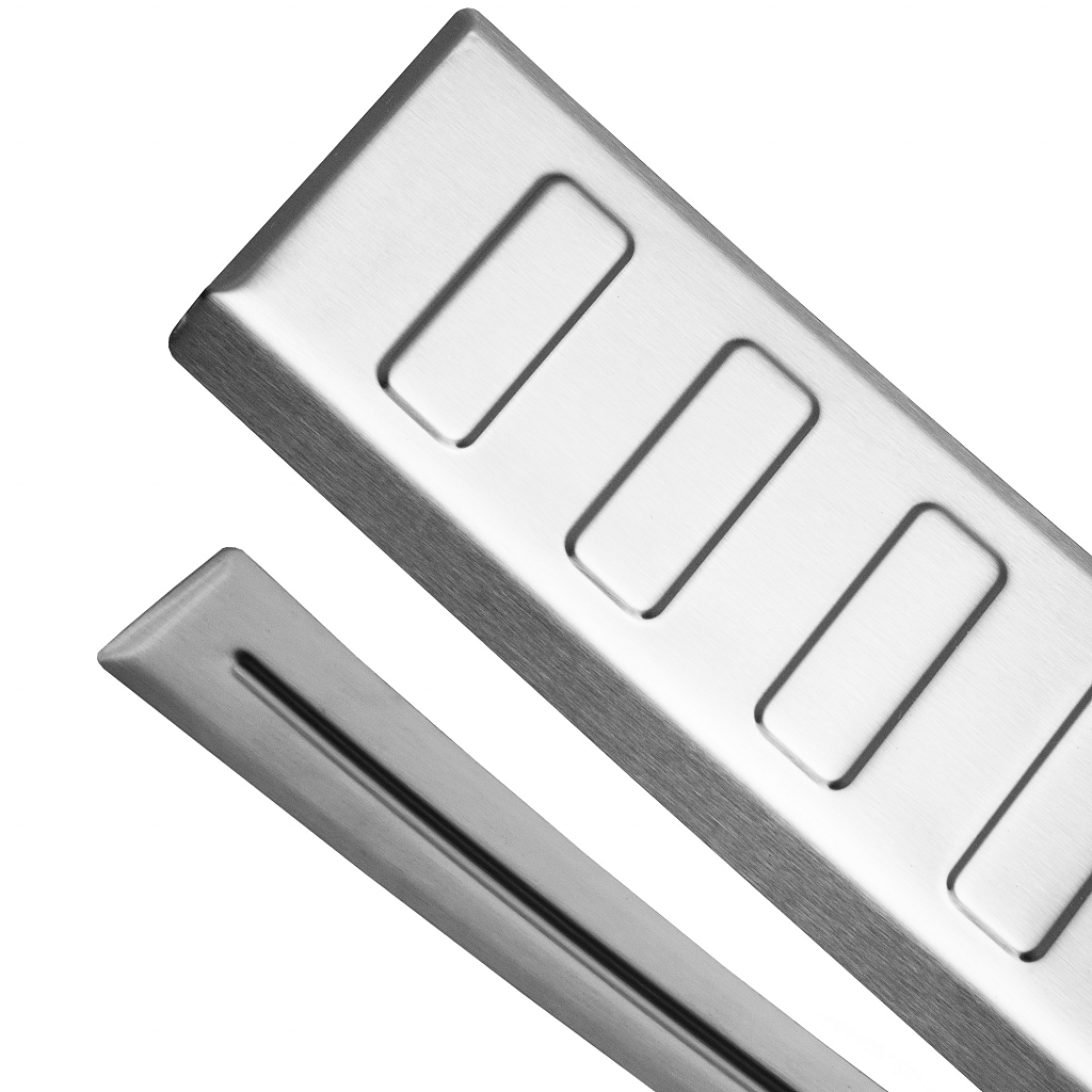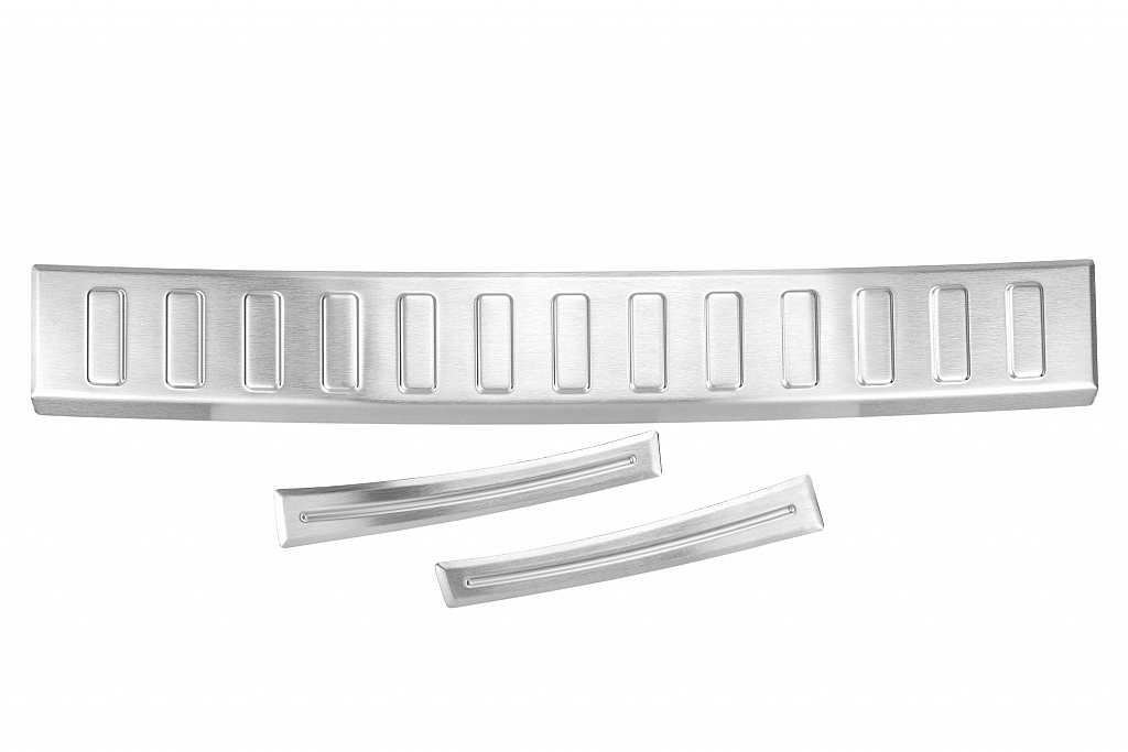 The Aroba stainless steel rear bumper protection protects the entire loading area from scratches and damage. This loading edge protection is precisely shaped to fit perfectly over the shape of the bumper.