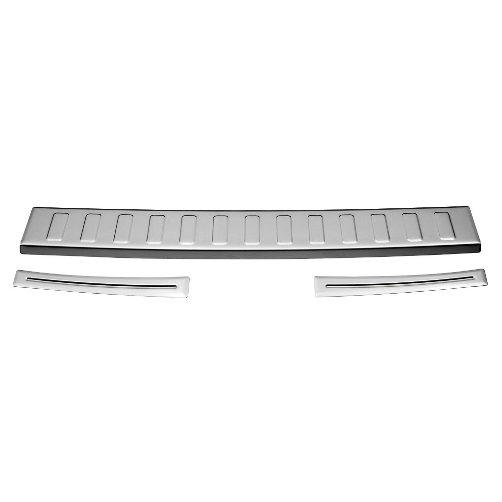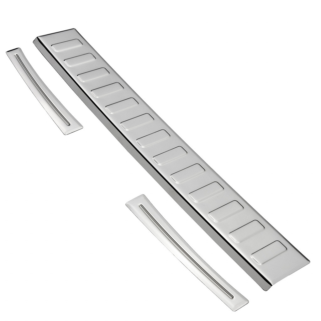The Aroba stainless steel rear bumper protection protects the entire loading area from scratches and damage. This loading edge protection is precisely shaped to fit perfectly over the shape of the bumper.