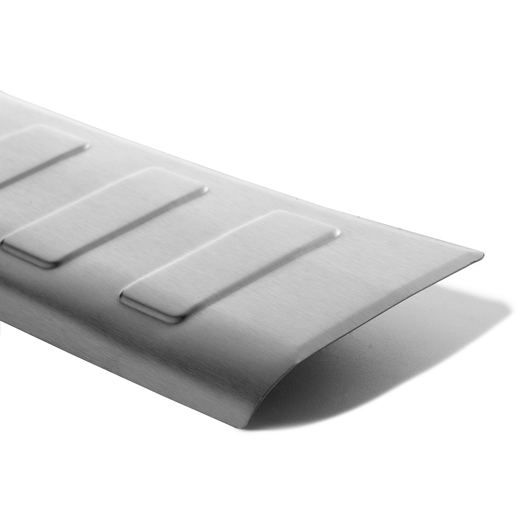 The Aroba stainless steel rear bumper protection protects the entire loading area from scratches and damage. This loading edge protection is precisely shaped to fit perfectly over the shape of the bumper.