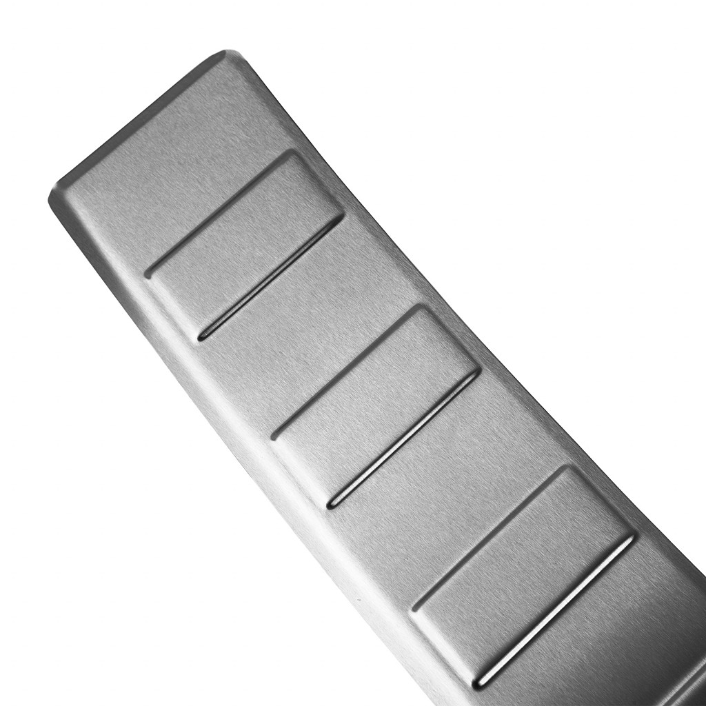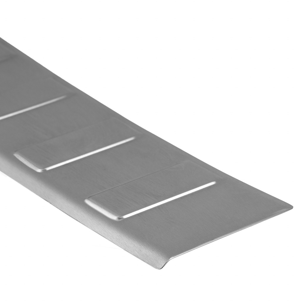 The Aroba stainless steel rear bumper protection protects the entire loading area from scratches and damage. This loading edge protection is precisely shaped to fit perfectly over the shape of the bumper.