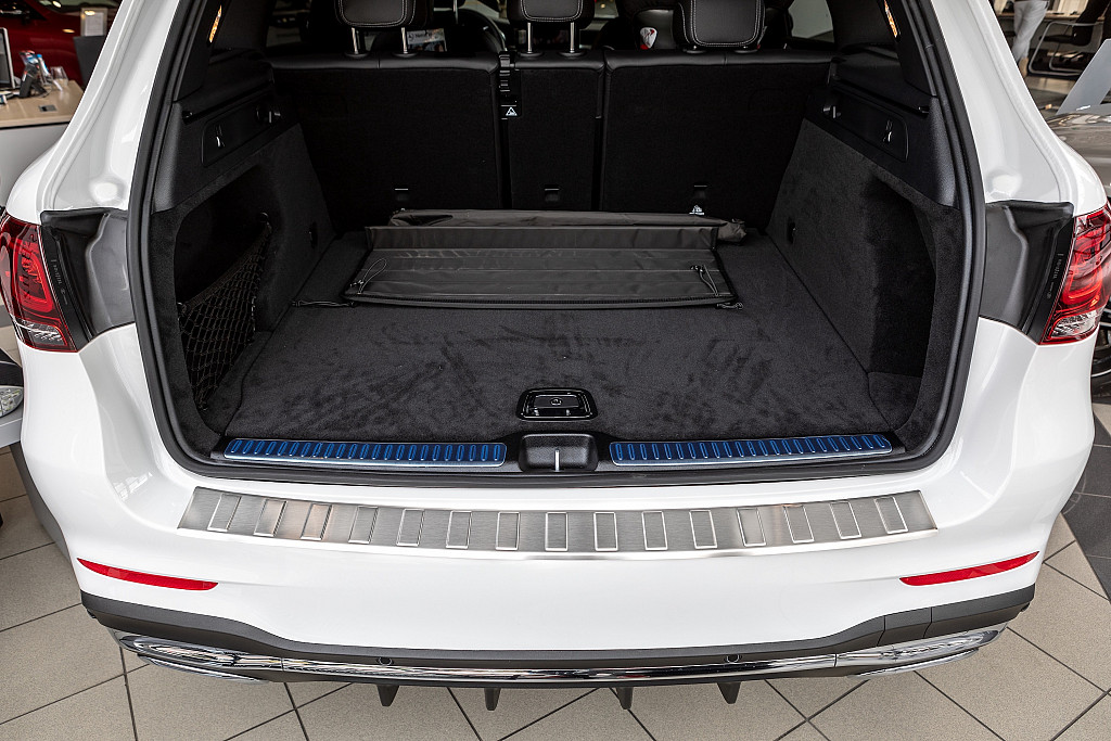 • / Stainless Steel Rear Bumper Protector Compatible With Mercedes Benz GLC (also for AMG) Facelift 07.2019-07.2022 Rearguard, Tailored Fit Bumper Guard, Loading Edge Protector- Colour Brushed Stainless Steel