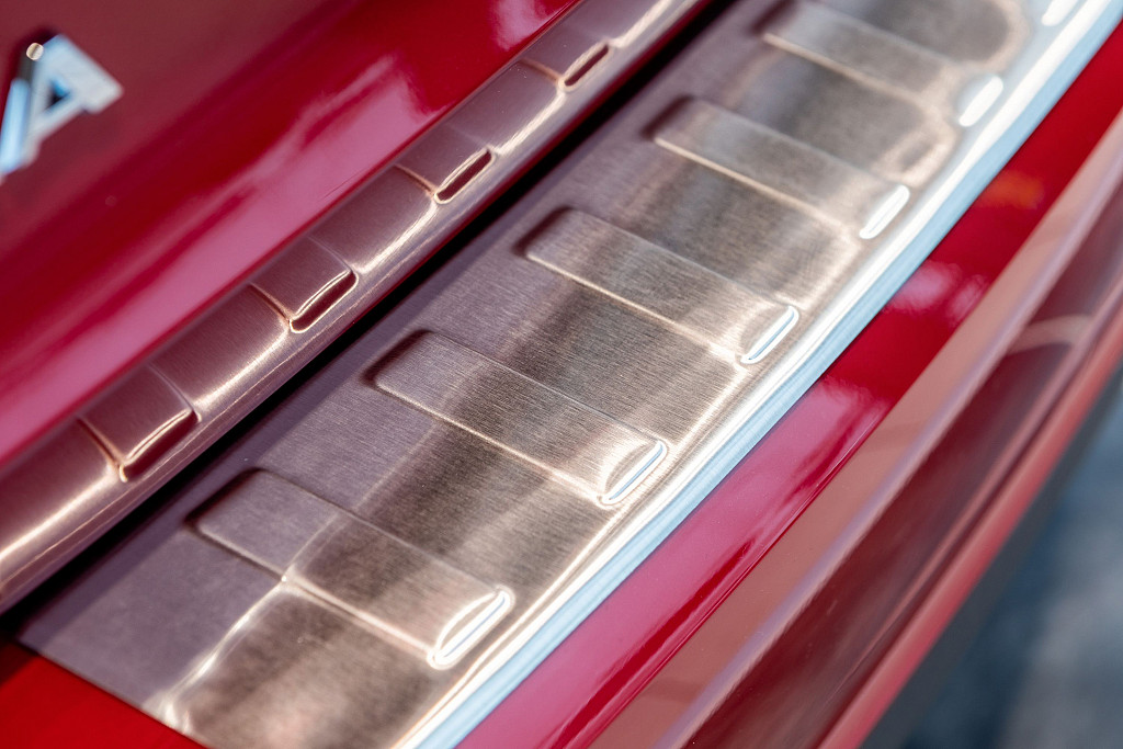 Our Aroba Rearguard loading edge protection is manufactured at our Aroba factory in the EU. Our bumper protector is laser measured for a precise and perfect fit and manufactured to OEM quality from the highest quality stainless steel for a long service life and easy cleaning. We use special 3M body adhesive to attach our parts, and the adhesive is pre-applied to the parts at the factory, ensuring quick and easy installation. This allows us to deliver to our customers ready-to-install, quality-checked and precisely crafted parts for direct installation.