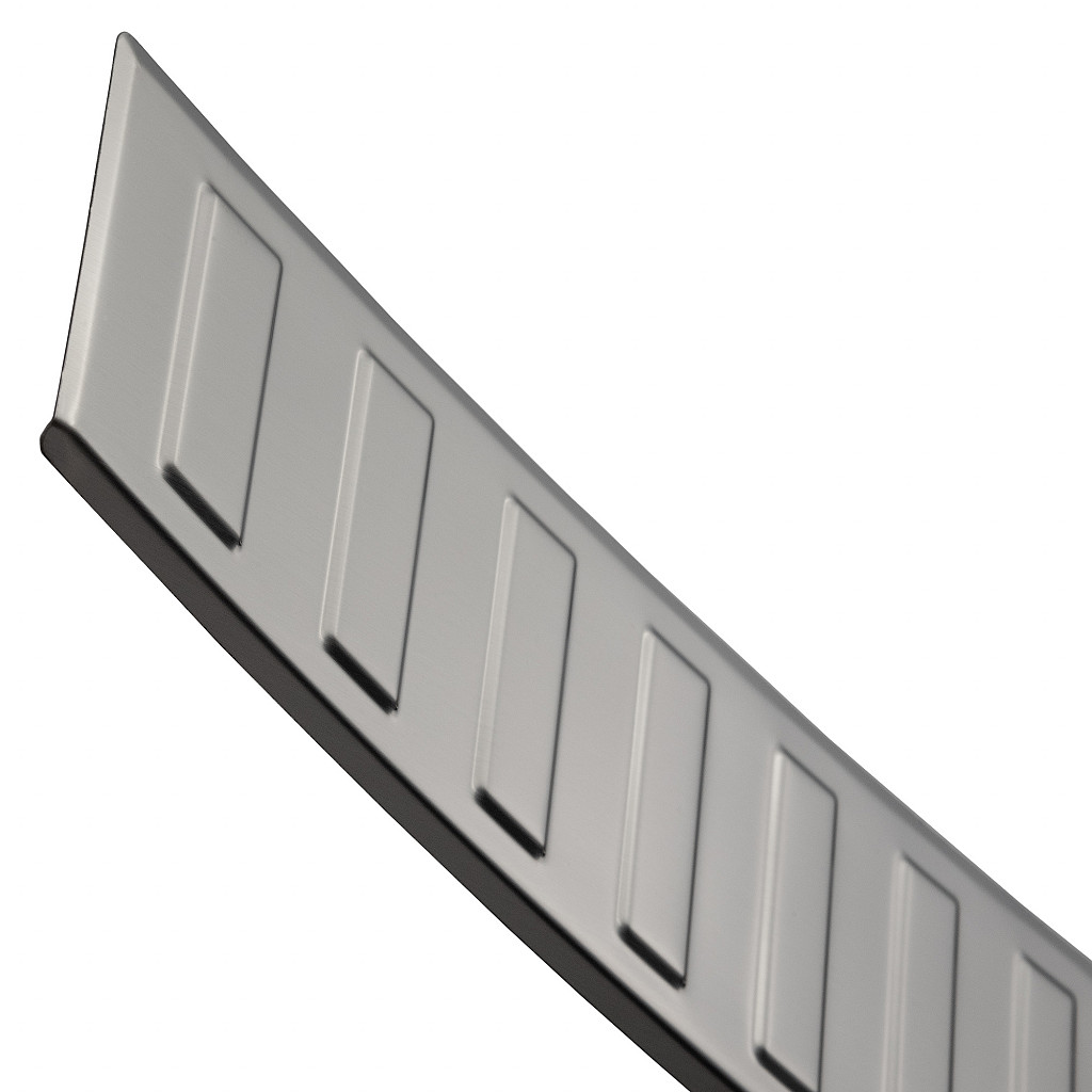 The Aroba stainless steel rear bumper protection protects the entire loading area from scratches and damage. This loading edge protection is precisely shaped to fit perfectly over the shape of the bumper.