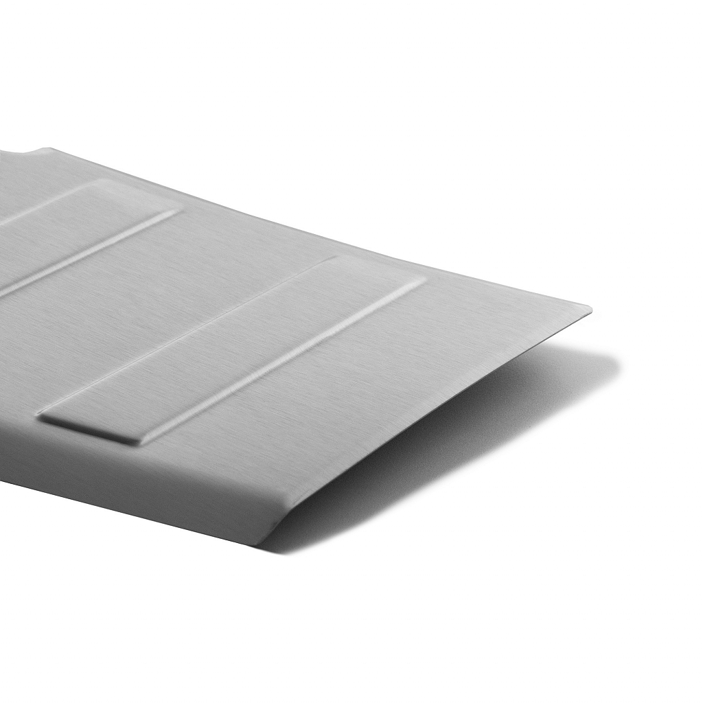 The Aroba stainless steel rear bumper protection protects the entire loading area from scratches and damage. This loading edge protection is precisely shaped to fit perfectly over the shape of the bumper.