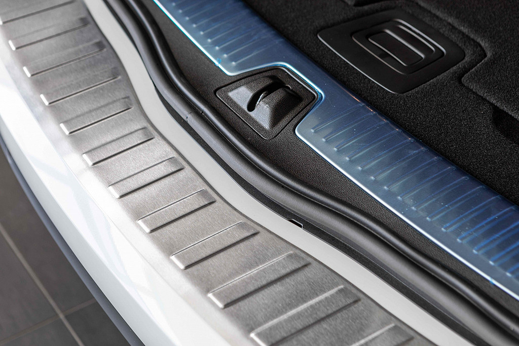 The Aroba stainless steel rear bumper protection protects the entire loading area from scratches and damage. This loading edge protection is precisely shaped to fit perfectly over the shape of the bumper.