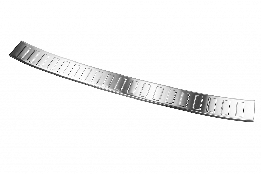 The Aroba stainless steel rear bumper protection protects the entire loading area from scratches and damage. This loading edge protection is precisely shaped to fit perfectly over the shape of the bumper.