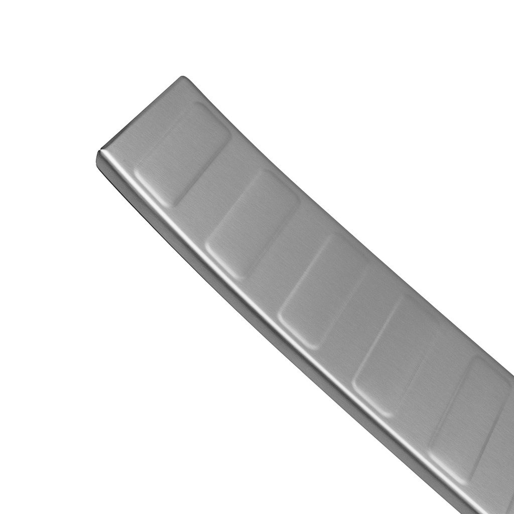 The Aroba stainless steel rear bumper protection protects the entire loading area from scratches and damage. This loading edge protection is precisely shaped to fit perfectly over the shape of the bumper.