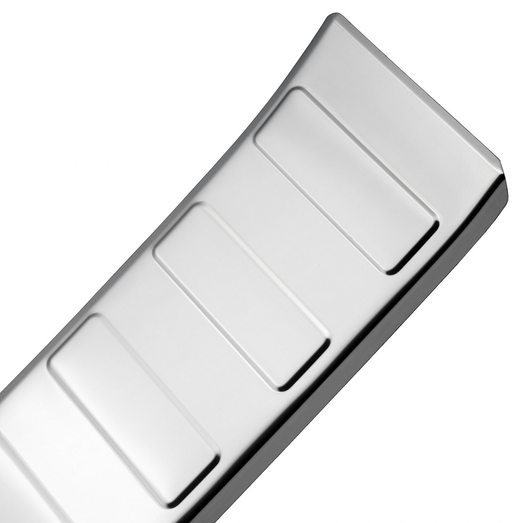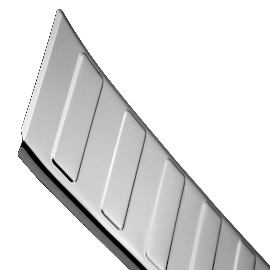 The Aroba stainless steel rear bumper protection protects the entire loading area from scratches and damage. This loading edge protection is precisely shaped to fit perfectly over the shape of the bumper.