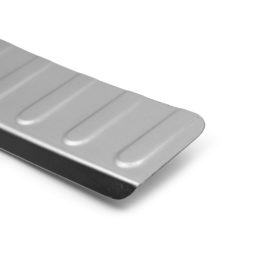 The Aroba stainless steel rear bumper protection protects the entire loading area from scratches and damage. This loading edge protection is precisely shaped to fit perfectly over the shape of the bumper.
