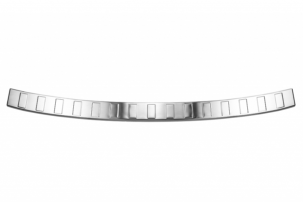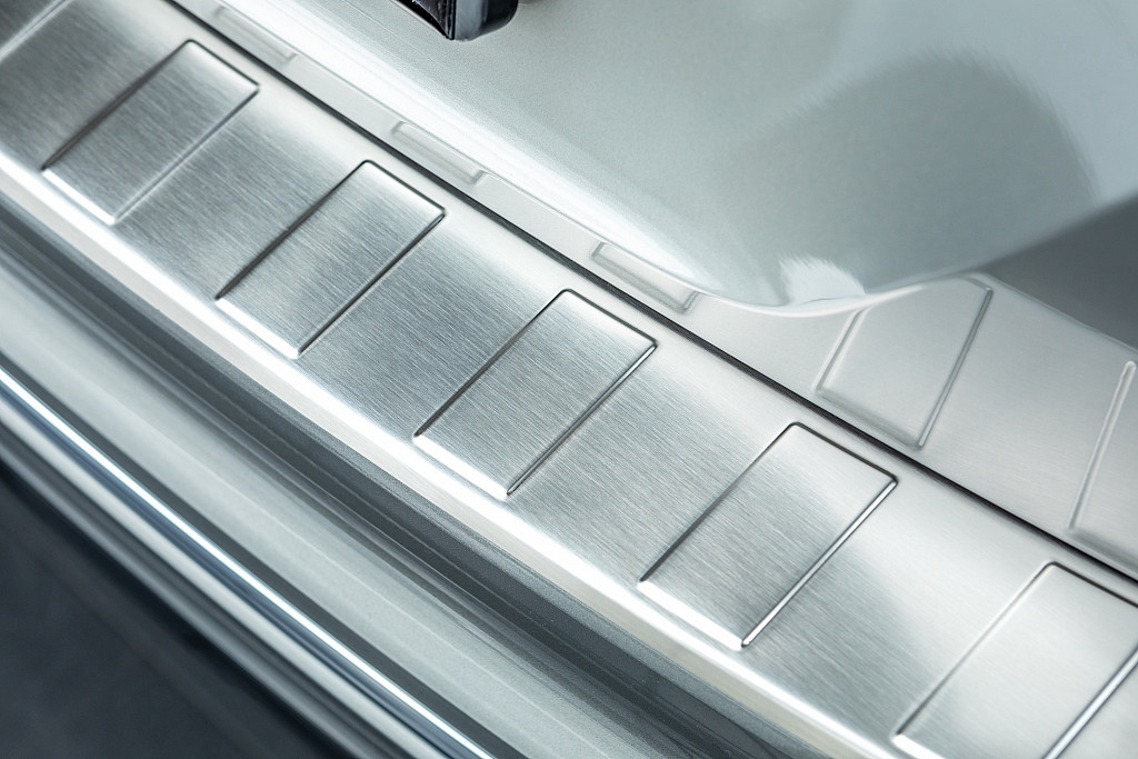 The Aroba stainless steel rear bumper protection protects the entire loading area from scratches and damage. This loading edge protection is precisely shaped to fit perfectly over the shape of the bumper.