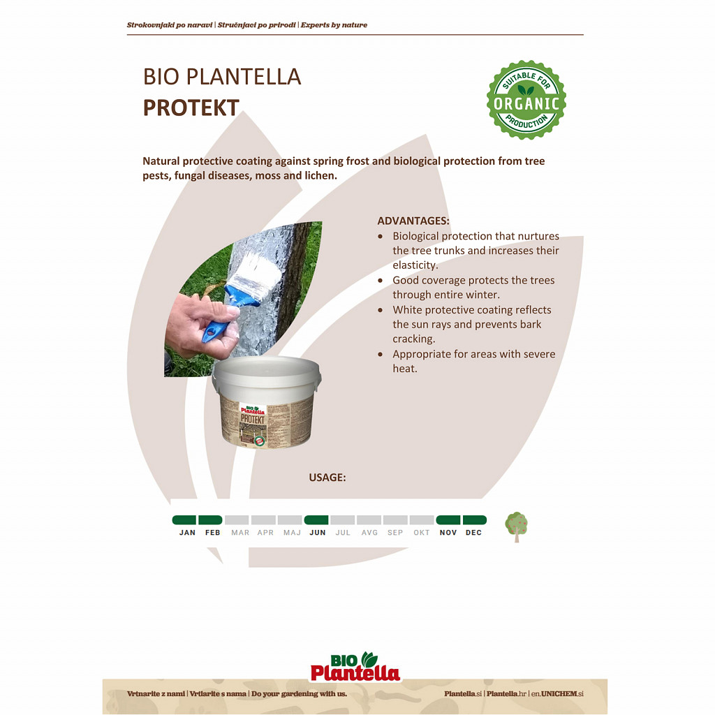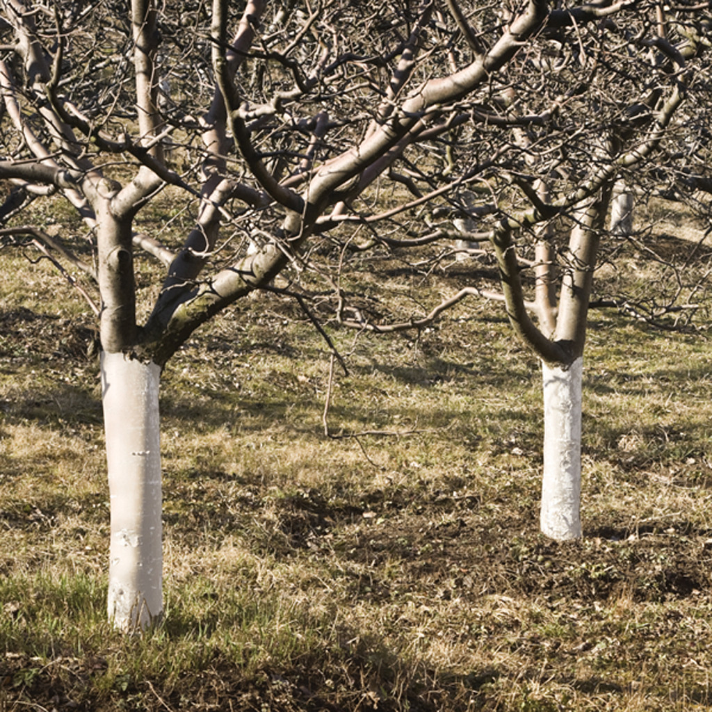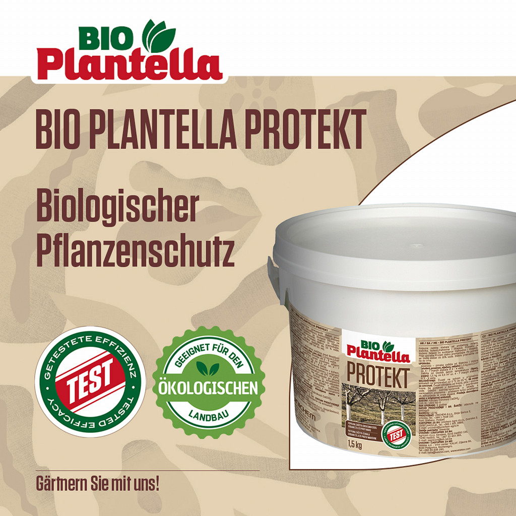 Bio Plantella Protekt is a high-quality, natural protective coating for tree trunks. It protects trees year-round – from frost damage in winter and sunburn in summer. The white coating reflects sunlight, prevents temperature shocks, and dangerous bark cracking.