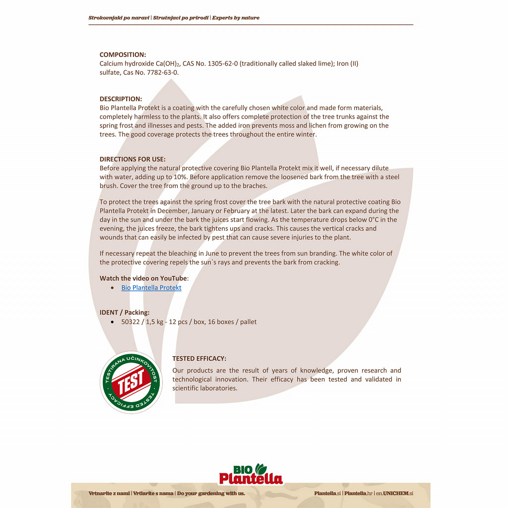 The formula is based on plant-friendly, non-toxic ingredients and is specially designed to maintain bark elasticity and prevent wounds where pests and diseases could settle. Thanks to excellent adhesion, the protective layer remains intact even in rain and snow.